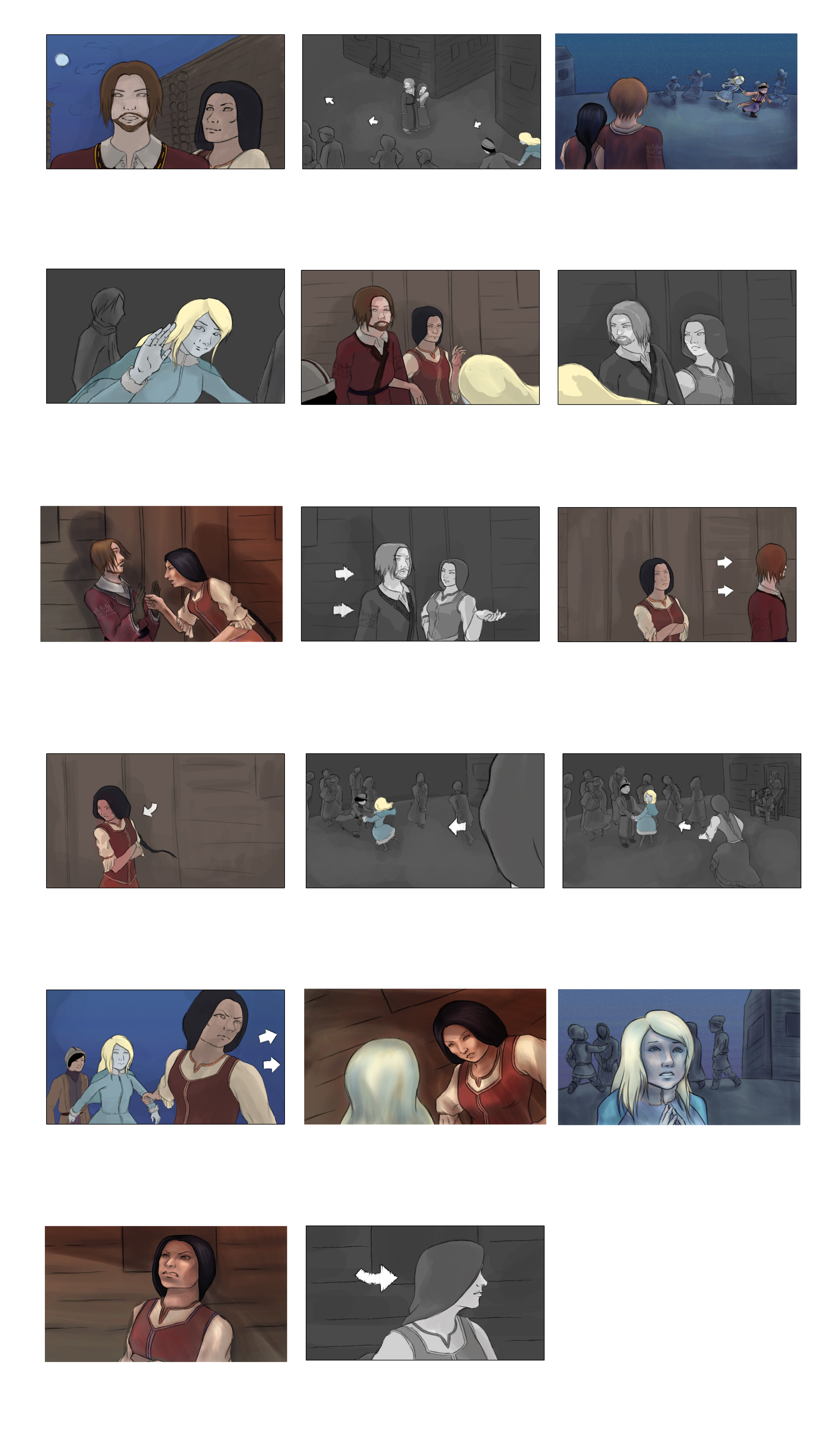 The storyboards were made in mind of the directing style of Marc Forster and specific actors and actresses for the main roles: